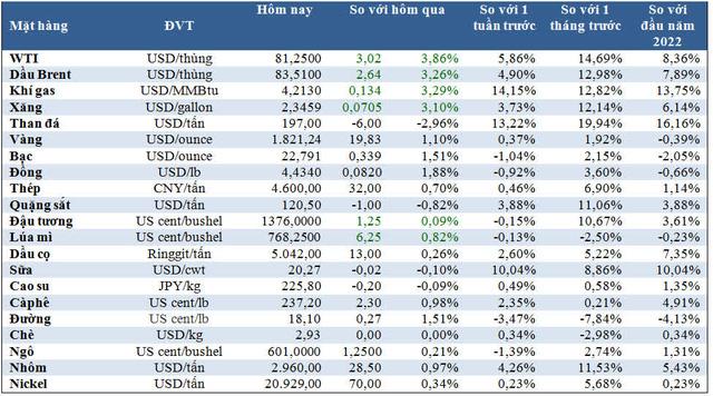 Giá các mặt hàng từ dầu tới sắt thép, kim loại cơ bản, ngũ cốc… đồng loạt tăng trong phiên vừa qua, trong đó dầu tăng gần 4%, nickel cao nhất trong gần 10 năm.